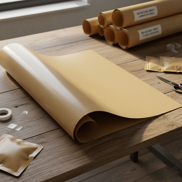 Machine glazed (MG) natural kraft paper with a high-gloss finish on one side and strength on the other. Ideal for wrapping, lamination, and flexible packaging where both appearance and toughness matter.