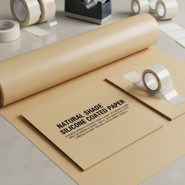 Durable silicone coated release paper in natural shade, ideal for adhesive tapes, labels, and protective liners, offering smooth release and excellent stability.